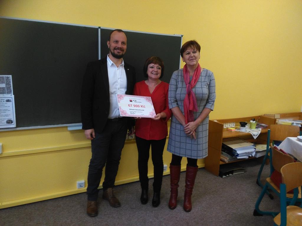 Dne 24. listopadu došlo k podpisu darovací smlouvy a z rukou Ing. Tomáše Talaše, člena správní rady Nadace Komerční banky – Jistota jsme obdrželi symbolický šek. Náš dík si pak zaslouží zvláště paní Jindra Stražovská, která dlouhodobě spolupracuje s naší školou a ze své pozice tento projekt podpořila. Tedy ještě jednou díky za „srdeční záležitost“ Jindry Stražovské a Komerční banky.