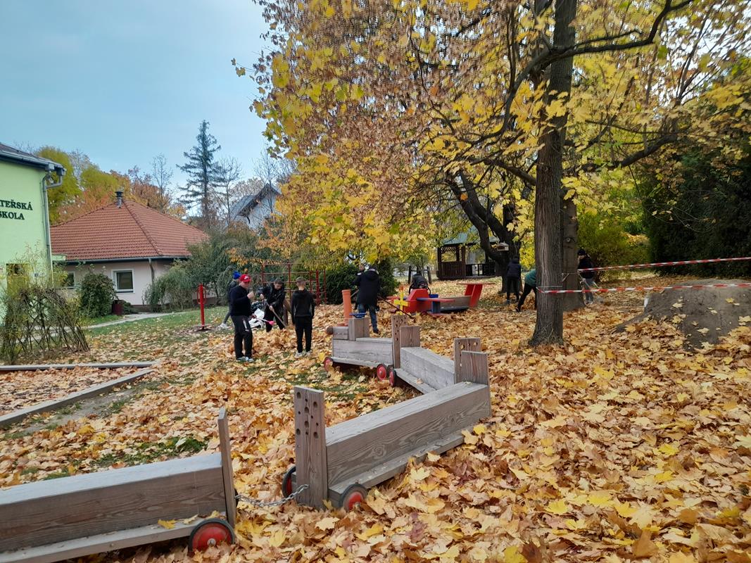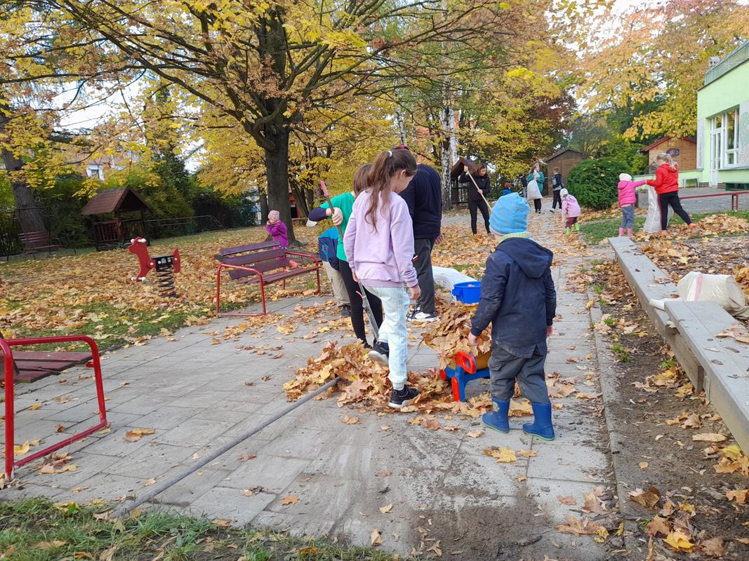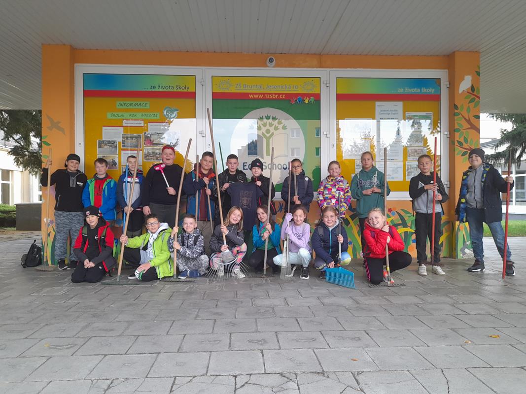 Třída 5. C v rámci akce 72hodin uklízela zahradu mateřské školy na Smetanově ulici.