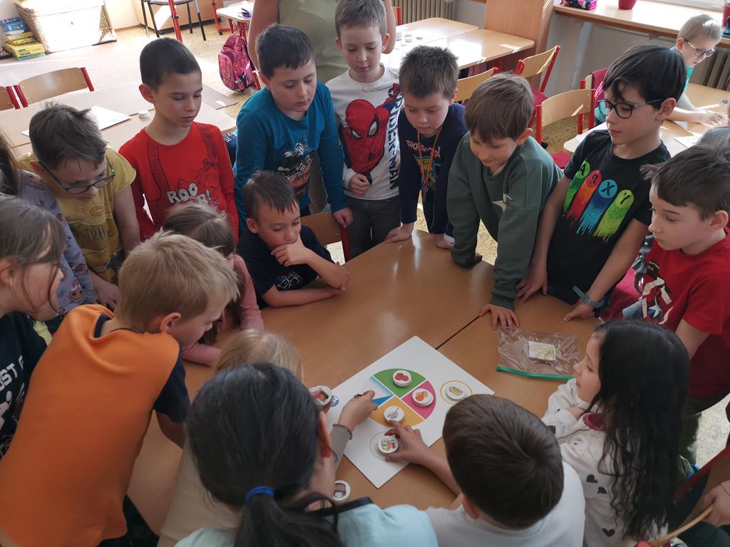 Ve středu 29. 3. 2023 proběhl ve třídách II. A a III. B dvouhodinový vzdělávací program „Zdravá 5“, který je celorepublikově realizován společností Albert. Program byl zaměřený na zásady zdravé výživy. Žáci formou skupinové hry plnili zadané úkoly. Získali rady ohledně stravy a také hodnotné odměny – do třídy jednu společenskou hru, knihu, nálepky a …