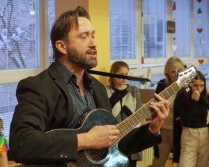 Letos na Jarmarku se proto vystoupit rozhodla čtyřčlenná rodící se kapela, která si pro vánoční atmosféru zvolila název Christmas Four Beans. Zazpívala 2 koledy, jednu píseň Karla Gotta a na rozloučení píseň skupiny The Beatles. Tři dívky této skupiny ze třídy VI.C byly nadšené a rády by zase svoje nadšení z rozvíjení talentu někde ukázaly. Tak jim budeme držet palce a pan učitel Vyleťal, který je posledním čtvrtým členem kapely, hlavně tu kytaru. Čas uplynul a my jdeme zase cvičit😊
