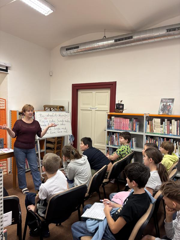 Knihovnická lekce s názvem Na vlnách básnění 📚🌊 zavedla žáky do světa poezie hravou a tvořivou formou ✨. Děti se seznámily s různými podobami básnického vyjádření ✍️📖 a prostřednictvím společných aktivit objevovaly rytmus, obraznost a zvukomalbu veršů 🎶🖼️. Lekce proběhla v příjemné a inspirativní atmosféře 😊🌟 a podpořila v dětech fantazii a chuť objevovat krásu …